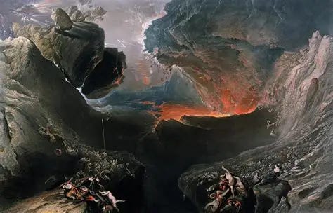 A puny existence: mere humans are helpless in the face of God’s roiling sky in John Martin’s 1851–53 The Great Day of His Wrath. © Christopher Wood Gallery, London.